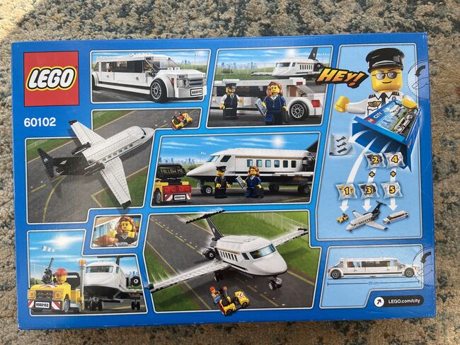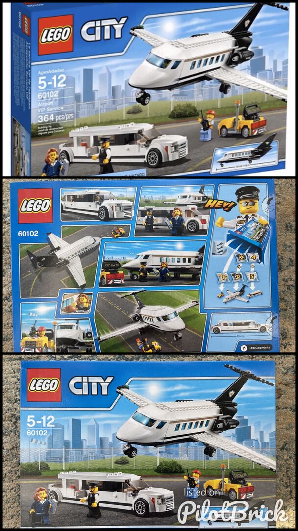 New in Sealed Box. Includes 4 minifigures: a businesswoman, pilot, limousine driver and an airport service worker. Features a private plane with accessible interior and turning nosewheeel, private limousine with accessible interior, and a private airport service vehicle. Accessory elements include a laptop, glass, croissant, ice cream and a walkie-talkie. Private plane measures over 4” (12cm) high, 12” (31cm) long and 12” (33cm) wide. Limousine measures over 1” (4cm) high, 8” (21cm) long and 1” (4cm) wide. Airport service vehicle measures over 1” (4cm) high, 2” (7cm) long and 1” (4cm) wide.